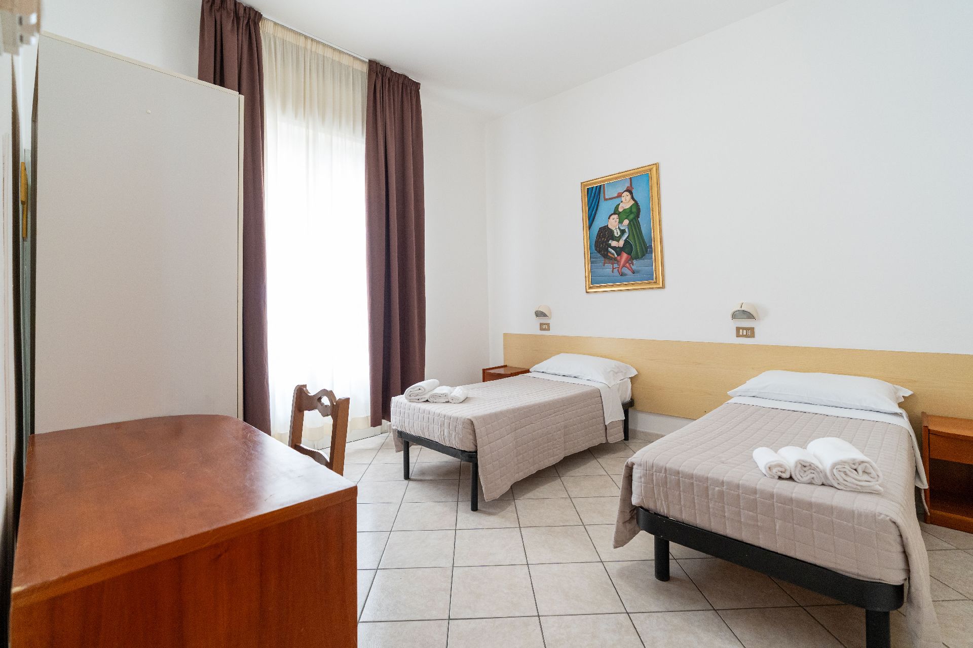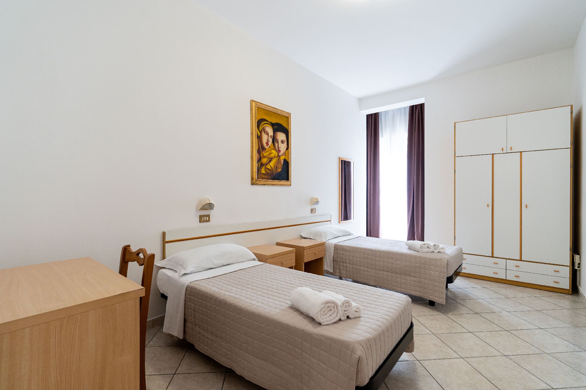 Disponiamo di 27 camere doppie e 2 camere singole, ma su richiesta possiamo aggiungere letti per ospitare fino a 3 o 4 persone per camera, offrendo una soluzione pratica anche per famiglie con bambini o piccoli gruppi.